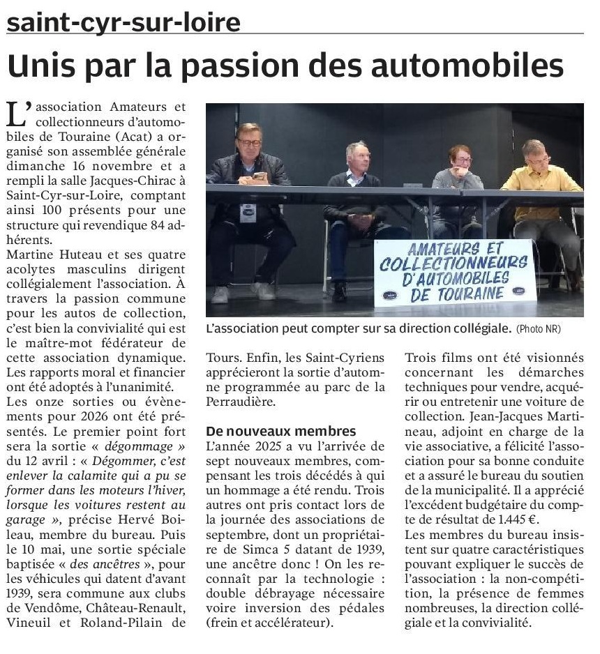 C'est à St Cyr-Sur-Loire, dans la Salle Rabelais , nouvellement réhabilitée, que s'est tenue l'Assemblée Générale de l'ACAT le 21 novembre 2021, en présence de Monsieur Jean-Jacques MARTINEAU, Maire adjoint délégué à la vie associative.